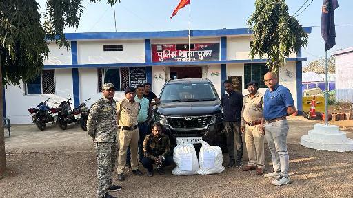बालोद अवैध मादक पदार्थ गांजा की तस्करी एवं परिवहन के रोकथाम हेतु पुलिस थाना पुरूर के पुलिस पार्टी को निर्देश प्राप्त हुआ था। कि दिनांक 08.02.2024 को मुखबीर मोबाईल से सूचना प्राप्त हुआ कि एक परपल रंग की महिन्द्रा एक्सयुवी-500 वाहन कार कमांक UP-32-JV-3093 जिसमें दो व्यक्ति सवार हैं जो अपनी वाहन के पिछले सीट में एक काले सफेद धारीदार बैग में अवैध मादक पदार्थ गांजा छुपाकर रखा हुआ हैं जिसे कोण्डागांव की ओर से केशकाल, कांकेर के रास्ते रायपुर की ओर लेकर जा रहें हैं की सुचना पर सउनि० अजयशंकर अविनाशी के हमराह पुलिस स्टाफ के ग्राम जगतरा दुर्गा मंदिर के पास एन.एच.30 मार्ग पर रवाना होकर वाहनों को रोककर नाकाबंदी कर चेकिंग कार्यवाही की जा रही थी उसी दौरान एक परपल रंग की महिन्द्रा एक्सयुवी-500 वाहन कार कमांक UP-32-JV-3093 आया जिसे ईशारा कर रोका गया जो अपने वाहन को रोककर भागने लगा। जिसमें एक व्यक्ति जंगल का फायदा उठाकर भाग गया एवं एक व्यक्ति को पुलिस द्वारा घेराबंदी कर पकड़ा गया जिसे नाम पता पुछने पर अपना नाम मो० इमरान खान पिता मो० रिजवान खान उम्र 24 वर्ष निवासी ग्राम सुरसुंडा पोस्ट साहबपुर थाना मसौली जिला बाराबंकी (उ०प्र०) का रहने वाला एवं वाहन का ड्रायवर होना बताया तथा फरार आरोपी का नाम शर्जुद्दीन शाह उम्र करीबन 35 वर्ष निवासी बाराबंकी थाना सिटीकोतवाली जिला बाराबंकी (उ०प्र०) क निवासी होना बताया वाहन महिन्द्रा एक्सयुवी-500 वाहन कार कमांक UP-32-JV-3093 की तलाशी लेने पर वाहन की पिछली सीट के नीचे भूरे रंग के सेलो टेप से लिपटा हुआ 08 पैकेट अवैध मादक पदार्थ गांजा कुल वजनी 40 कि०ग्रा० किमती 4,00,000/रू एवं घटना में प्रयुक्त वाहन किमती 10,00,000/रू व आरापीं के कब्जे से 200/ रू० नगद व मोबाईल व अन्य दस्तावेज कुल जुमला 14,20,200 / रूपये को जप्त कर कब्जा पुलिस लिया एवं अपराध 26/24 धारा 20 (ख) NDPS ACT कायम कर आरोपी 1. मो० इमरान खान पिता मो० रिजवान खान उम्र 24 वर्ष निवासी ग्राम सुरसुंडा पोस्ट साहबपुर थाना मसौली जिला बाराबंकी (उ०प्र०) को गिरफ्तार कर न्यायिक रिमाण्ड पर भेजा गया है।