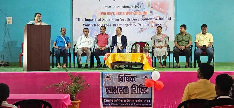 बालोद राष्ट्रीय विधिक सेवा प्राधिकरण नई दिल्ली के द्वारा संचालित योजनाओं के कियान्वयन एवं प्रचार प्रसार तथा छ०ग० राज्य विधिक सेवा प्राधिकरण, बिलासपुर के द्वारा जारी एक्शन प्लान के अनुसार शासकीय घनश्याम सिंह गुप्त स्नातकोत्तर महाविद्यालय बालोद के द्वारा आयोजित दो दिवसीय स्पोर्ट्स व रेडक्रॉस कार्यशाला में विधिक जागरूकता का कार्यक्रम आयोजित किया गया। उक्त शिविर में माननीय डॉ० प्रज्ञा पचौरी, जिला न्यायाधीश / अध्यक्ष जिला विधिक सेवा प्राधिकरण बालोद के द्वारा उपस्थित छात्र छात्राओं को मौलिक अधिकार एवं मौलिक कर्तव्य, पॉक्सो एक्ट, मोटरयान अधिनियम, एफ०आई०आर० के संबंध में, घरेलू हिंसा से महिलाओं का संरक्षण अधिनियम, नालसा के द्वारा संचालित योजनाएं, रैगिंग कानून के संबंध, निःशुल्क विधिक सहायता व सलाह, नेशनल लोक अदालत, सायबर काईम, नालसा का टोल फ्री नंबर 15100, सालसा का यूट्यूब चैनल ” जनचेतना” आदि के बारे में विस्तार पूर्वक जानकारी दिया गया। इस अवसर पर उक्त कार्यक्रम में श्रीमती सुमन सिंह, सचिव जिला विधिक सेवा प्राधिकरण बालोद, कॉलेज के प्राचार्य एवं प्राध्यापकगण, छात्र छात्रायें एवं जिला विधिक सेवा प्राधिकरण के पैरालिगल वालिटियर्स उपस्थित रहें।