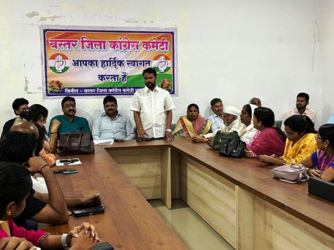 मोदी सरकार की नाकामियों को जन- जन तक पहुंचाएं कार्यकर्ता : सुशील मौर्य जगदलपुर बस्तर जिला कांग्रेस कमेटी शहर द्वारा लोकसभा चुनाव को लेकर कांग्रेस नेताओं व कार्यकर्ताओं की बैठक आहूत की गई।बस्तर जिला प्रभारी शकील रिजवी व चित्रकोट एवं जगदलपुर विधानसभा क्षेत्रों के चुनाव समन्वयक रेखचंद की उपस्थिति और शहर जिला कांग्रेस अध्यक्ष सुशील मौर्य की अध्यक्षता में आगामी लोकसभा चुनाव को लेकर मंथन किया गया।