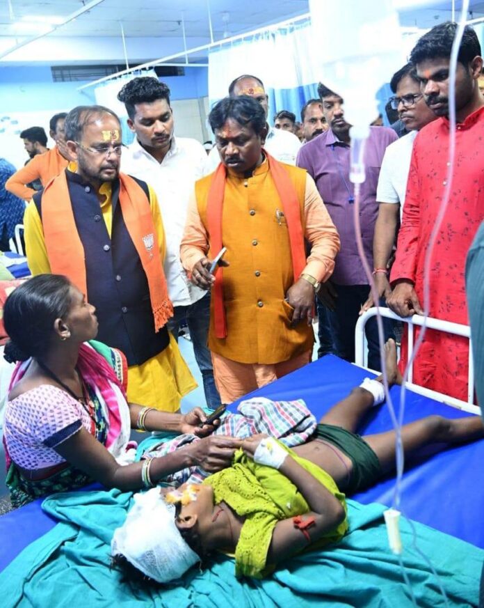 श्रद्धालु ऑटो में सवार होकर चित्रकोट स्थित शिव मंदिर जा रहे थे। गरदा घाटी में अचानक ऑटो के पलट जाने से दो मासूम बच्चों समेत एक महिला की मौत हो गई। वहीं घटना के बाद घायलों को बेहतर उपचार के लिए मेकाज पहुंचाया गया। बस्तर लोकसभा सीट से भाजपा प्रत्याशी महेश कश्यप ने मेडिकल कॉलेज डिमरापाल अस्पताल पहुंचकर घटना में घायल लोगों से मुलाकात की है। महेश कश्यप ने हादसे में घायल हुए लोगों के परिजनों को ढाढ़स बंधाते हुए कहा कि हमारे प्रधानमंत्री नरेंद्र मोदी जी और मुख्यमंत्री विष्णुदेव साय जी छत्तीसगढ़ के हर दुखी और पीड़ित परिवारों के साथ खड़ी है। सभी घायलों का समुचित इलाज होगा और दंतेश्वरी मैया सब ठीक कर देंगी। इस दौरान महेश कश्यप ने घायलों को सर्वोत्तम चिकित्सा सुविधा उपलब्ध कराने डिमरापाल अस्पताल प्रबंधन से आग्रह किया।