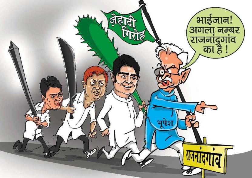 जगदलपुर दो पूर्व मुख्यमंत्रियों डॉ. रमन सिंह और भूपेश बघेल की नाक का सवाल बन चुकी राजनांदगांव लोकसभा सीट पर अब सोशल मीडिया वार शुरू हो गया है। भाजपा द्वारा सोशल मीडिया पर पोस्ट किया गया एक कार्टून इन दिनों सुर्खियों में है। इस कार्टून को शीर्षक दिया गया है – राजनांदगांव या जिहाद गांव, चुनाव आपका है।