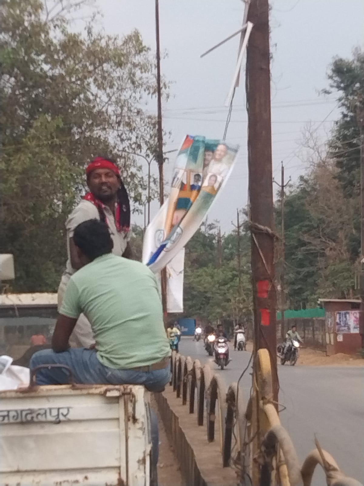 जगदलपुर आदर्श आचार संहिता लागू होते ही नगर निगम प्रशासन द्वारा संपत्ति विरूपण के खिलाफ कार्रवाई शुरू कर दी गई है। कलेक्टर विजय दयाराम के निर्देश पर पर संपत्ति विरूपण के तहत नगर निगम प्रशासन की टीम द्वारा शहर के विभिन्न क्षेत्र से राजनीतिक दलों के झंडे बैनर पोस्टर हटाने की कार्रवाई शुरू कर दी गई है। नगर निगम आयुक्त हरेश मंडावी ने बताया कि संपत्ति विरूपण के संबंध में अधिकारियों एवं कर्मचारियों को निर्देश जारी कर दिया गया है। निगम प्रशासन की टीम बनाई गई है जो निगम क्षेत्र के 48 वार्डो एवं मुख्य मार्ग में संपत्ति विरूपण के तहत कार्रवाई कर रही है।