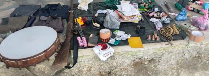 सुकमा जिले के किस्टाराम थानाक्षेत्र में नक्सलियों के होने की सूचना पर डीआरजी व बस्तर फाइटर के जवान ऑपरेशन पर निकले। जवान टेटेमडगू व पटेलपारा पहुंचे, जिन्हें देख नक्सली भाग गए। मौके की सर्चिंग करने पर वहां एक नग भरमार, दो प्रेशर आईईडी, एक स्केनर सेट, तीन बैटरी, चार पिट्टू, दो नग वर्दी, बारूद पावडर 500 ग्राम, छोटी बैटरी 2 नग, बिजली वायर 20 मीटर, चेकर मशीन 01 नग, घूंघरू 1 जोड़ी, फटका 3 डिब्बा, सेलो टेप 2 नग, नक्सल साहित्य 12 नग, दवाईयां व अन्य नक्सली दैनिक उपयोगी सामाग्री बरामद की गई। उसके बाद जवान वापस सुरक्षित ककैंप लौट आए।