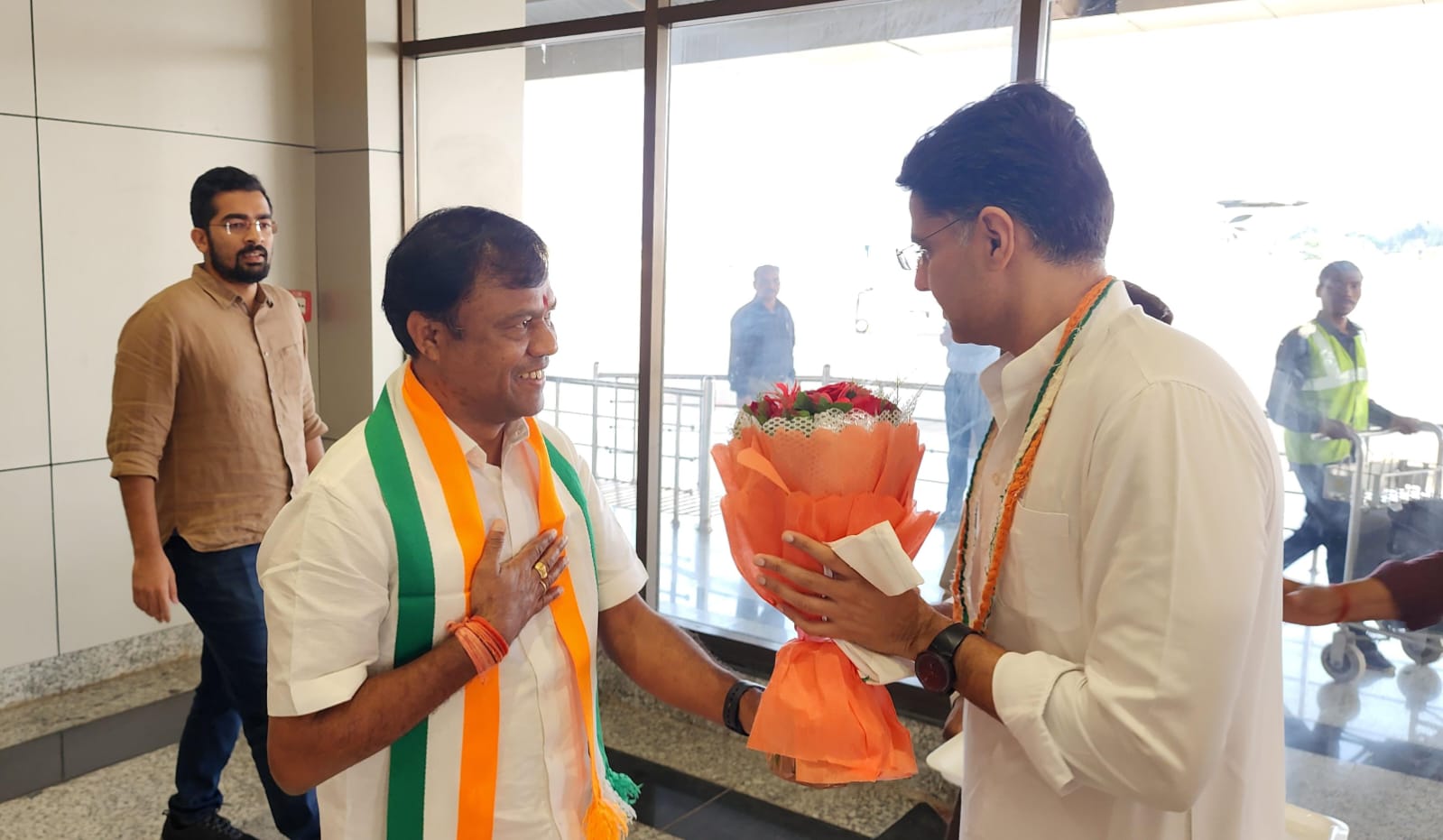 जगदलपुर छत्तीसगढ़ प्रदेश कांग्रेस कमेटी के प्रभारी सचिन पायलट शुक्रवार की शाम जगदलपुर पहुंचे। यहां मां दंतेश्वरी एयरपोर्ट पर सचिन पायलट का स्वागत प्रदेश कांग्रेस अध्यक्ष दीपक बैज, प्रदेश कांग्रेस कमेटी के प्रभारी महामंत्री मलकीत सिंह गैदू, बस्तर शहर जिला कांग्रेस कमेटी के अध्यक्ष सुशील मौर्य समेत अन्य नेताओं ने किया।