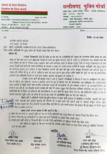 ज्ञापन में कहा गया है कि प्रदेश एवं देश स्तर पर आदिवासियों की आवाज उठाने वाले आदिवासी नेताओं को दमनात्मक तरीके से दबाने का प्रयास लगातार जारी है। फर्जी मामलों में गिरफ्तार कर जेल में डाला जा रहा है। जिसका प्रत्यक्ष उदाहरण छत्तीसगढ़ के मोहला- मानपुर जिले के मानपुर विकासखंड के ग्राम कलवर निवासी सर्व आदिवासी समाज छत्तीसगढ़ के उपाध्यक्ष व बस्तर जन संघर्ष समन्वय समिति के संरक्षक आदिवासी नेता सुरजू टेकाम को साजिश के तहत विस्फोटक सामग्री रखने के झूठे आरोप में गिरफ्तार किया जाना है। बस्तर में जल, जंगल, जमीन बचाने के मुद्दे पर चल रहे लोकतांत्रिक आंदोलनों और आदिवासी नेताओं पर फर्जी धारा लगाकर आंदोलन को कुचलने की साजिश है। नक्सली गतिविधियों से निपटनें के नाम पर शस्त्रीकरण की प्रक्रिया तेज हो गई है, और पूंजीवादी व्यवस्था व कार्पोरेट घरानों के के लूट के खिलाफ चल रहे लोकतांत्रिक तथा शांतिपूर्वक और अहिंसकात्मक धरना प्रदर्शनों के नेतृत्व करने वाले स्थानीय आदिवासी नेताओं की गिरफ्तारी का क्रम लगातार जारी है। पिछली भाजपा सरकार में सलवा जुडुम जैसे हिंसात्मक अभियान प्रायोजित कर बड़े पैमाने पर आदिवासियों के नागरिक अधिकारों और मानवाधिकारों का हनन करने का कुचक किया गया था। इस असंवैधानिक मुहिम पर सुप्रीम कोर्ट के आदेश के बाद रोक लग पाई थी।
