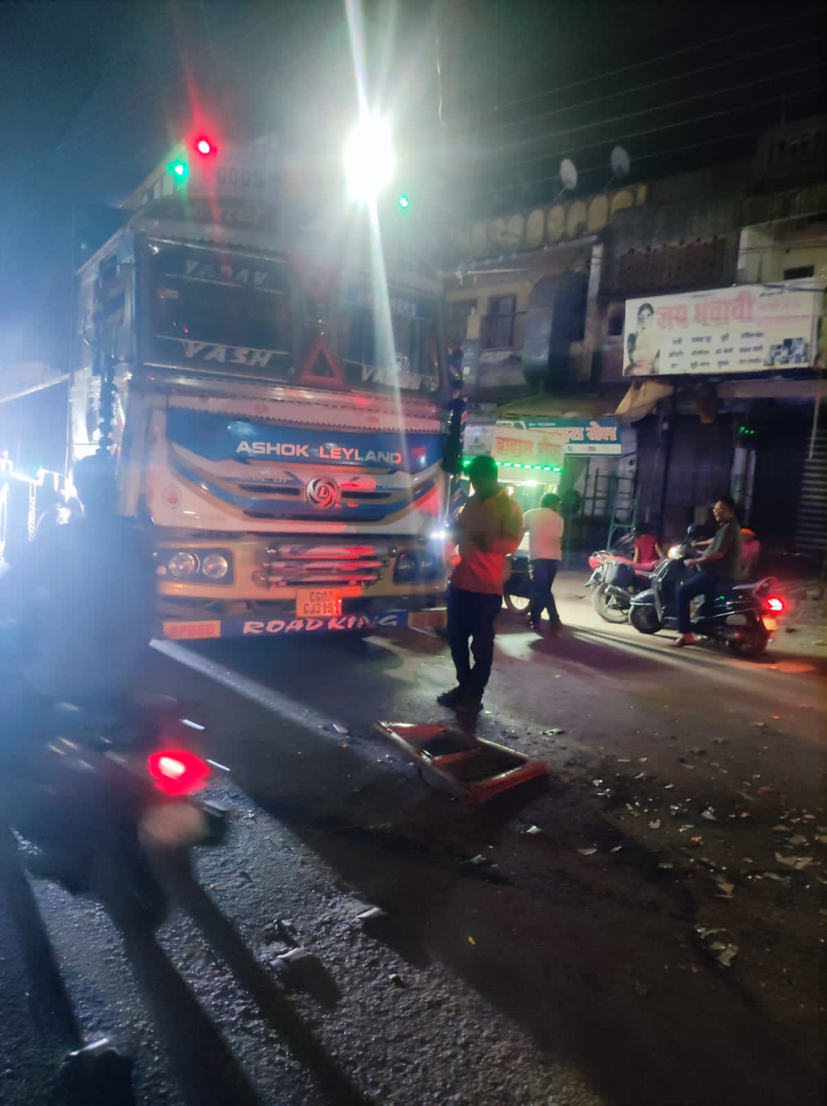 बिग ब्रेकिंग दल्ली राजहरा मुख्य मार्ग लवली ड्रेसस के सामने में फिर तेज रफ्तार का कहर दो ट्रक की आपसी टक्कर के बाद एक ट्रक खड़ी कार को टक्कर मार बुरी तरह क्षतिग्रस्त, किया मौके पर पुलिस पहुंच तत्काल ट्रक को सड़क से हटाया, लंबे समय से बाईपास की मांग दल्ली राजहरा के, नागरिकों द्वारा की जा रही है किंतु प्रशासन की अनदेखी के कारण आए दिन सड़क दुर्घटना है घट रही हैं आम नागरिक को इसका खामियाजा अपने जनधन, की हानि से चुकाना पड़ता है।