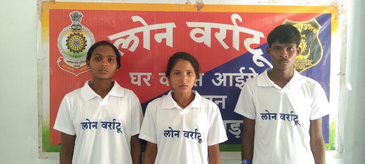 जगदलपुर बस्तर संभाग के दंतेवाड़ा जिले में पुलिस द्वारा चलाए जा रहे लोन वर्राटू अभियान से प्रेरित होकर फिर तीन नक्सलियों ने आत्मसमर्पण किया है।