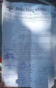 ।जिसकी जवाबदेही शासन एवं प्रशासन की होगी। ज्ञापन देने विहिप जिला अध्यक्ष हरि साहू, जिला मंत्री हरि साहू, विहिप पूर्व पदाधिकारी योगेंद्र कौशिक, कैलाश राठी, सुभाष राय, जिला उपाध्यक्ष उमा गुप्ता, नगर अध्यक्ष पवन राजपूत, बजरंगदल जिला संयोजक घनश्याम नाग, बजरंगदल जिला सह संयोजक मुन्ना बजरंगी, जिला सह संयोजक खीरेंद्र दास, जिला गौ रक्षा से विष्णु ठाकुर, नगर संयोजक भवानी चौहान, नगर सुरक्षा प्रमुख शुभम ठाकुर, नगर सह गौ रक्षा सुदेश बघेल, नगर साप्ताहिक मिलन प्रमुख सन्नी रेली, काशी चालकी, अंशु नाग, पवन व समस्त हिंदू समाज के सदस्य बड़ी संख्या में उपस्तिथ थे।