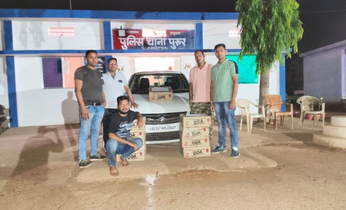 अवैध मादक पदार्थ गांजा की तस्करी एवं परिवहन के रोकथाम हेतु पुलिस थाना पुरूर के पुलिस पार्टी को निर्देश प्राप्त हुआ था। कि दिनांक 31.05.2024 के 14.00 बजे जरिये मोबाईल, मुखबीर से सुचना मिला कि एक सफेद रंग की मारुति सुजकी स्वीफ्ट डिजायर कार क्रमांक CG-07-AS- 2621 के डिक्की में अवैध अग्रेजी शराब छिपा कर रखा हुआ है। जिसे रायपुर की तरफ से जगदलपुर बिक्री हेतु भारी मात्रा में शराब लेकर जा रहे हैं, कि सूचना तस्दीकी हेतु हमराह स्टाफ व गवाहनो के एन एच 30 मार्ग पॉवर हाउस के पास ग्राम चिटाँद में पहुंच कर नाकाबंदी कर संदिग्ध वाहनों की चेकिंग कर रहे थे मुखबिर के बताए अनुसार एक सफेद रंग की मारुति सुजकी स्वीफ्ट डिजायर कार क्रमांक CG-07-AS-2621 आया जिसे इसारा कर रोका गया कि वाहन चालक गाडी रोककर गाडी से उत्तरकर भागने का प्रयास कर रहा था। जिसे हमराह स्टाफ के घेराबंदी कर पकड़ा गया। जिससे नाम व पता पूछने पर वाहन चालक ने अपना नाम विक्की कुमार यादव पिता गजराज सिंह यादव उम्र 31 वर्ष निवासी बजरंग पारा कोहका थाना सुपेला भिलाई जिला दुर्ग (छ०ग०) का रहने वाला बताया तथा उक्त वाहन की डिक्की में अंग्रेजी शराब गोवा कम्पनी का छिपाकर रखना जिसे म०प्र० से लेकर जगदलपुर बिक्री हेतु परिवहन करना बताया। बाद आरोपी विक्की कुमार यादव को उसके कब्जे के वाहन क्रमांक CG-07-AS-2621 की तलाशी लेने हेतु नोटिस दिया, नोटिस देकर तलाशी हेतु सहमति प्राप्त किया, तलाशी लेने के पूर्व पुलिस पार्टी गवाह एवं शासकीय अधिग्रहित वाहन सीजी 05 ए एल 6754 का तलाशी आरोपी विक्की कुमार यादव के द्वारा लेने पर कोई संदेहास्पद वस्तु नहीं मिला, जिसका पंचनामा तैयार किया गया। बाद आरोपी के कब्जे की एक सफेद रंग की मारुति सुजकी स्वीफ्ट डिजायर कार क्रमांक CG-07-AS-2621 की तलाशी लेने पर उसके डिक्की में खाकी रंग का कार्टून 09 पेटी जिसमें GLASS 50×180 ML GOA। लिखा है प्रत्येक पेटी में 50-50 नग कुल जुमला 450 नग अग्रेजी शराब गोवा व्हीस्की प्रत्येक पौवा में 180-180 एमएल शराब भरी हुई, सीलबंद हालत में for sale in madhyapradesh only लिखा हुआ। कुल जुमला शराब 81 बल्क लीटर कीमती 51,750 रूपये एवं आरोपी विक्की कुमार यादव के पास से एक नग रियलमी कम्पनी का एन्ड्रायड मोबाईल पुरानी इस्तमाली कीमती करीब 5000/रु० मिला। कुल जुमला 3,56,750/रु जब्त कर कब्जा पुलिस लिया गया कि आरोपी का कृत्य धारा सदर का अपराध पाये जाने से आरोपी विक्की कुमार यादव के विरुध्द अपराध क्रमांक 86/2024 धारा 34