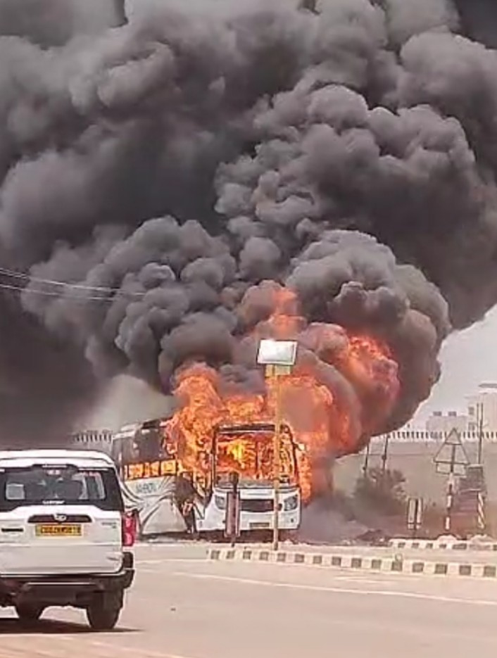 रायपुर अभनपुर के पास चलती बस में लगी आग । बताया जा रहा है कि महिंद्रा ट्रेवल्स बस क्रमांक सीजी 19 एफ 0251 बस्तर से रायपुर आ रही थी । तभी अभनपुर के मोहन ढाबा के पास बस के एडिटर वाले हिस्से से काला धुआं उठाना शुरू हो गया l जो बस के अंदर भरने लगा। बस में कुल 40 के करीब यात्री सवार थे जो घबराकर यात्रियों ने बस के दरवाजे और खिड़कियों से कुद कर अपनी जान बचाई । बस में सवार सभी यात्री सुरक्षित हैं ।सभी यात्रियों को दूसरी बस से रायपुर रवाना किया गया मौके पर पहुंची अभनपुर पुलिस और दमकल विभाग ने आग पर काबू पा लिया।