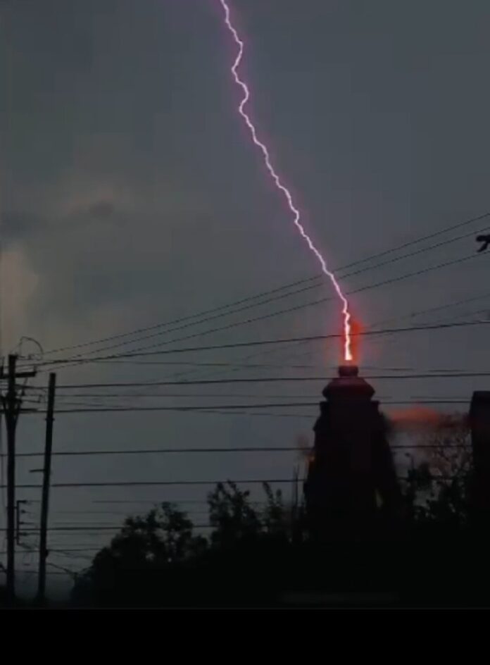 कोंडागांव नगर और आसपास के इलाके में आज मौसम का मिजाज अचानक बिगड़ गया। तेज गरज के साथ हुई बारिश शुरू हो गई। इसी बीच गांधी चौक स्थित निर्माणधीन राम मंदिर की गुंबद पर आकाशीय बिजली गिर गई। गाज गिरने से मंदिर की गुंबद को क्षति पहुंची है, मगर कोई जनहानि नही हुई। मौके पर कोई श्रमिक मौजूद नहीं था अन्यथा बड़ा हादसा सकता था। बारिश का वीडियो बनाने के दौरान किसी ने बिजली गिरने की घटना को भी मोबइल कैमरे में कैद कर लिया। आकाशीय बिजली गिरने का यह वीडियो सोशल मीडिया पर जमकर वायरल हो रहा है।