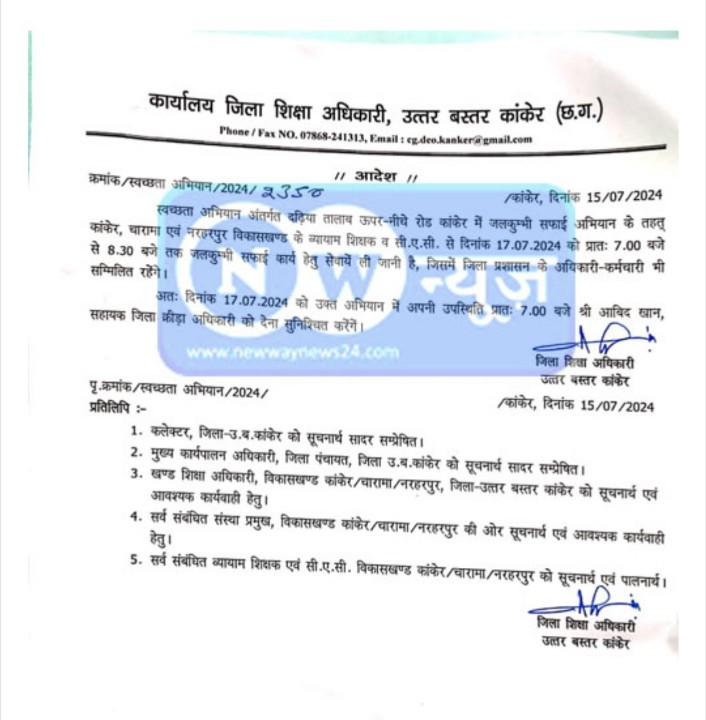 छत्तीसगढ़ में ऐसा कौन सा काम नहीं है, जो शिक्षकों से न लिया जाता हो? जनगणना, योजनाओं के प्रचार, मतदान, मतगणना, गांव से बच्चों को ढूंढ ढूंढ कर लाना और स्कूल में दाखिला दिलाना और भी कई कार्य शिक्षकों से कराए जाते हैं। ऊपर से तुर्रा यह कि परीक्षा परिणाम का स्तर नहीं गिरना चाहिए, वरना कार्रवाई का डर। ऐसे में बेचारे शिक्षक बच्चों को पढ़ाएं या बेगारी करें? उनके लिए तो नौकरी दोधारी तलवार पर चलने जैसी हो गई है। पंच सरपंच से लेकर जनपद पंचायत के सीईओ तक और शिक्षा विभाग के संकुल समन्वयक व बीईओ से लेकर डीईओ तक शिक्षकों को हड़काने में लगे रहते हैं। कांकेर के जिला शिक्षा अधिकारी ने तो हद ही कर दी है। एक अजीबो गरीब आदेश कांकेर के डीईओ ने जारी किया है, जिसमें शिक्षकों को तलाब की सफाई के काम में लगने को कहा गया है। जिला शिक्षा अधिकारी ने इस संबंध में आदेश जारी किया है। आदेश में कांकेर डीईओ द्वारा दढ़िया तालाब ऊपर नीचे रोड कांकेर में जलकुंभी सफाई अभियान के तहत कांकेर, चारामा एवं नरहरपुर विकासखंडों के व्यायाम शिक्षकों व सीएसी से 17 जुलाई को सुबह 7 बजे से 8.30 बजे तक जलकुंभी सफाई कार्य दिया गया है। कितने शिक्षकों ने अपने जिला शिक्षा अधिकारी के इस फरमान पर अमल किया, यह तो ज्ञात नहीं हो पाया, मगर यह तय है कि नाफरमानी करने वाले शिक्षक शिक्षिकाओं पर शामत जरूर आ सकती है।