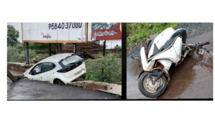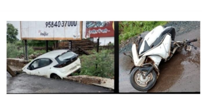 बालोद :- नशे से धुत कार चालक ने स्कूटी चालक को मारी टक्कर । सूत्रों के अनुसार कार चालक बुरी तरह से नशे से धुत तथा गलत दिशा में चलाने के कारण स्कूटी चालक को अपने चपेट में लेकर घसीटते हुए कुछ दूरी ले गया । युवती बालोद जिले के झलमला ऋषिका चौरसिया उम्र 20 वर्ष बुरी तरह से घायल हो गई । बालोद जिला अस्पताल में प्राथमिक उपचार के बाद हायर सेंटर रेफर किया गया । पुलिस को घटना की जानकारी मिलते ही पुलिस घटना स्थल पहुंचकर नशे से धुत कार चालक को अपना पहचान पूछने पर वहा बताने लायक नही था । कार चालक को हिरासत में ले लिया आगे की कार्यवाही जारी हैं ।