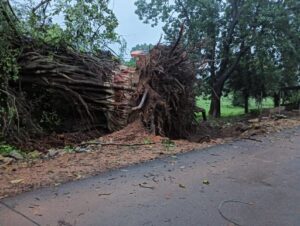 दल्ली राजहरा से चलकर अंतागढ़ तक जाने वाली सवारी पैसेंजर ट्रेन सवारी लेने आज सुबह दल्ली राजहरा से अंतागढ़ जाने के दौरान सुबह 4:45 बजे मुल्ला कैंप के पास बरगद का विशाल पेड़ गिरने से ट्रेन पटरी से उतर गई घटना में कोई भी घायल नहीं हुआ है ट्रेन के इंजन का शीशा टूटने से ड्राइवर को मामूली चोट आई है।