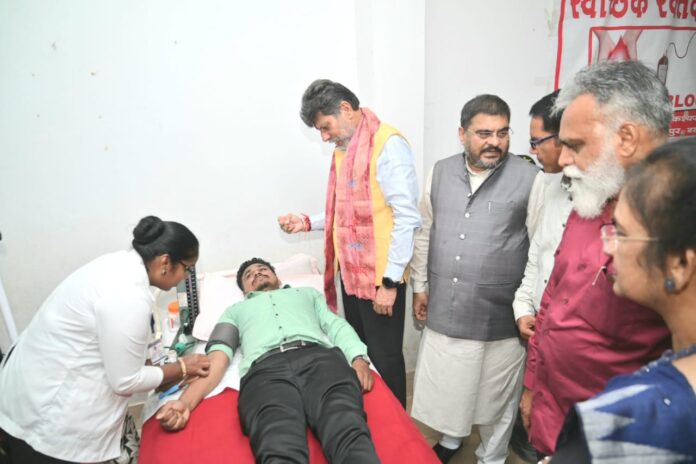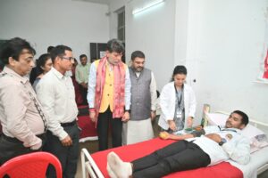 जगदलपुर आदेश्वर नर्सिंग इंस्टीट्यूट खम्हारगांव में रक्तदान शिविर का शुभारंभ भाजपा प्रदेश अध्यक्ष एवं विधायक किरण देव द्वारा किया गया। जिसमें भाजपा के वरिष्ठ नेता विद्याशरण तिवारी, संचालक ललित लुक्कड़, विक्रम शर्मा, गोविंद ईनानी एवं नर्सिंग इंस्टीट्यूट के शिक्षक शिक्षिकाएं एवं विद्यार्थी उपस्थित थे। इस अवसर पर विधायक किरण देव ने कहा रक्तदान एक पुण्य का कार्य है। आदेश्वर नर्सिंग इंस्टीट्यूट के सभी स्टॉफ बधाई के पात्र हैं।