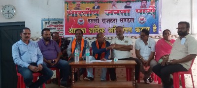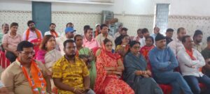 हम सभी भारतीयों अपनी आजादी की 76 वीं वर्षगांठ को अपने घर पर तिरंगा झंडा लगाकर इस त्यौहार को मनाना। बैठक में मंडल महामंत्री महेंद्र सिंग, मदन माईती, रमेश गुर्जर, सुजीत झा रामेश्वर साहू ,संजीव सिंह,गायत्री , श्रीमती पूरोबी वर्मा,ललिता विश्वकर्मा,उषा साहू, कुमारी रावटे, श्रीमती रमणी बाघ, श्रीमती नंदा पसीने एम.एस. श्रीजीत, सुरेन्द्र बेहरा,सोनू ठगेल,भूपेंद्र श्रीवास,मुश्ताक अहमद,विजय भान सि, राजेश काम्बले, गिरधर सिन्हा, हुकुम सिंह, धनगुन, अर्जुन विश्वकर्मा, कोमल जामुरिर्या, मनोज दुबे,सुमीत जैन,श्याम जायसवाल, उमेश विश्वकर्मा, मुकेश चिकवा,मेवा लाल पटेल,विरेन्द्र कुमार साहू,मनन गुप्ता,नदीम बडगुजर, निलेश श्रीवास्तव, भोराज साहू, अमन, आरिफ खान, कार्यकर्ता उपस्थित थे।