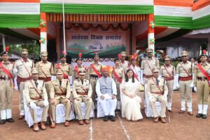 दुर्ग /रायपुर। दुर्ग जिले की गौरवशाली परम्परा के अनुरूप 78वें स्वतंत्रता दिवस हर्षोल्लास वातावरण में पूरी गरिमा के साथ समारोहपूर्वक मनाया गया। कार्यक्रम के मुख्य अतिथि प्रदेश के संसदीय कार्य, वन एवं जलवायु परिवर्तन, जल संसाधन, कौशल विकास एवं सहकारिता मंत्री केदार कश्यप ने मुख्य समारोह स्थल पुलिस परेड ग्राऊण्ड में ध्वजारोहरण कर परेड की सलामी ली। उन्होंने मुख्यमंत्री विष्णुदेव साय का प्रदेश की जनता के नाम दिये संदेश का वाचन किया और समारोह में उपस्थित स्वतंत्रता संग्राम सैनानियों एवं शहीद जवानों के परिजनों को शॉल व श्रीफल भेंटकर सम्मानित किया। समारोह के दौरान जिले के विभिन्न स्कूलों के बच्चों द्वारा सांस्कृतिक कार्यक्रम की अत्यंत मनमोहक और आकर्षक प्रस्तुति दी गई। मुख्य अतिथि ने सांस्कृतिक कार्यक्रम में प्रथम, द्वितीय व तृतीय स्थान प्राप्त करने वाले विद्यालय के प्रतिभागी बच्चों को पुरस्कार वितरण किया। उन्होंने सराहनीय कार्य करने वाले विभिन्न विभागों के अधिकारी/ कर्मचारियों को भी प्रशस्ति-पत्र वितरित कर सम्मानित किया। समारोह के प्रारंभ में मुख्य अतिथि वन मंत्री केदार कश्यप ने समारोह स्थल पुलिस परेड ग्राऊण्ड पहुंचकर राष्ट्रीय ध्वज फहराया। राष्ट्रगान के उपरान्त उन्होंने कलेक्टर सुश्री ऋचा प्रकाश चौधरी और पुलिस अधीक्षक जितेन्द्र शुक्ला के साथ परेड का निरीक्षण किया तथा समारोह में सम्मिलित सभी लोगों का अभिवादन स्वीकार किया। समारोह में परेड द्वारा हर्ष फायर किया गया और राष्ट्रपति की जय-जयकार की गई। उत्साह व उमंग के प्रतीक रंग-बिरंगे गुब्बारे आकाश में उड़ाये गये। मुख्य अतिथि ने परेड की सलामी ली तथा परेड में शामिल प्लाटून कमाण्डरों से परिचय प्राप्त किया। परेड में छत्तीसगढ़ सशस्त्र बल, जिला पुलिस बल (पुरूष व महिला), जिला पुलिस बल की 03 प्लाटून, नगर सेना, एन.सी.सी. सीनियर एवं जुनियर (बालक व बालिका), रेडक्रॉस शामिल थे।