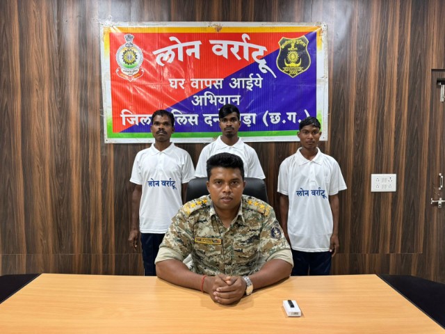 बस्तर संभाग छत्तीसगढ़ में सर्वाधिक नक्सल प्रभावित संभाग है। केंद्र और राज्य सरकार की विकासपरक और नक्सली व्यवस्थापन की नीतियों और कड़ाई के चलते नक्सल समस्या पर उल्लेखनीय नियंत्रण लगा है। नक्सलियों और उनके समर्थक ग्रामीणों का नक्सलवाद से लगातार मोहभंग हो रहा है। नक्सलियों को समाज की मुख्यधारा से जोड़ने और नक्सल प्रभावित गांवों की बुनियादी सुविधाओं से लैस करने के लिए बस्तर संभाग के सभी जिलों में अलग अलग नाम से अभियान चलाया जा रहा है। दंतेवाड़ा जिले में लोन वर्राटू चलाया जा रहा है। इसका अर्थ है घर लौट आइए। लोन वर्राटू अभियान से प्रेरित होकर इस जिले में गुरुवार को फिर 3 नक्सलियों ने आत्मसमर्पण किया। ये नक्सली गंगालूर, भैरमगढ़ व कटेकल्याण एरिया कमेटी में सक्रिय रहे हैं। इनमें गंगालूर एरिया मेडिकल टीम पार्टी सदस्य सुरेश माड़वी पिता सन्नू, निवासी हुर्रेपाल हंड्रीपाल पारा थाना मिरतुर जिला बीजापुर, फुलगट्टा पंचायत जनताना सरकार सदस्य व ग्राम दोर्रागुड़ा पंच कमेटी अध्यक्ष बचलू भोगाम पिता छन्नू निवासी दोर्रागुड़ा पटेलपारा थाना मिरतुर जिला बीजापुर व ग्राम मार्जूम हुर्रापारा डीएकेएमएस सदस्य हिड़मा राम पोड़ियामी पिता बुधरा राम निवासी मार्जूम हुर्रापारा थाना कटेकल्याण जिला दंतेवाड़ा शामिल हैं। तीनों ने आत्मसमर्पण की इच्छा जाहिर करते हुए दंतेवाड़ा रेंज के उप पुलिस महानिरीक्षक कमलोचन कश्यप, सीआरपीएफ डीआईजी राकेश कुमार, पुलिस अधीक्षक दंतेवाड़ा गौरव राय, कमांडेंट 230वीं वाहिनी सीआरपीएफ अनिल कुमार प्रसाद, अतिरिक्त पुलिस अधीक्षक स्मृतिक राजनाला, द्वितीय कमान अधिकारी 230वीं वाहिनी सीआरपीएफ अनिल शेखावत, अतिरिक्त पुलिस अधीक्षक दंतेवाड़ा रामकुमार बर्मन व अन्य अफसरों के समक्ष डीआरजी कार्यालय दंतेवाड़ा में आत्मसमर्पण किया। उन्हें आत्मसमर्पण कराने में आसूचना शाखा 230वीं वाहिनी सीआरपीएफ, डीआरजी एवं बस्तर फाईटर दंतेवाड़ा का विशेष योगदान रहा। तीनों आत्मसमर्पित नक्सलियों को पुनर्वास नीति के तहत 25-25 हजार रूपए की सहायता राशि दी गई तथा के छत्तीसगढ़ शासन द्वारा अन्य सुविधायें मुहैया कराई जाएगी। लोन वर्राटू अभियान के तहत् अब तक जिले में 193 ईनामी सहित कुल 864 नक्सली आत्मसमर्पण कर समाज के मुख्यधारा में जुड़ चुके हैं।