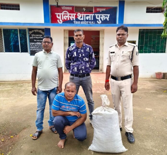 - पुरूर पुलिस द्वारा घरा गया ओड़ीसा का गांजा तस्कर।