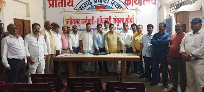 छत्तीसगढ़ कर्मचारी अधिकारी महासंघ के जिला सयोजक अजय प्रताप सिंह परिहार ने प्रेस विज्ञप्ति बताया की छत्तीसगढ़ कर्मचारी अधिकारी सयुंक्त मोर्चा के घटक संगठनों की राजधानी रायपुर में आयोजित बैठक में राज्य के कर्मचारियों एवं पेंशनरों को चुनावी घोषणा पत्र में मोदी की गारंटी के तहत केंद्र के समान डीए एवं डीए की एरियर्स राशि को जीपीएफ खाते में समायोजित करने का किए गए वादे को प्रदेश के मुख्य मंत्री,वित्त मंत्री एवं मुख्य सचिव को 31 जुलाई को दिए गए ज्ञापन एवं वित्त मंत्री से चर्चा के बाद भी एक जनवरी 2024 से देय चार प्रतिशत डीए/डीआर की घोषणा आज पर्यंत नही होने से प्रदेश के कर्मचारियों के आक्रोश देखते हुए 9 सितंबर को मंत्रालय,संचालनालय, सहित प्रदेश के समस्त कार्यालय,विद्यालय एवं स्वास्थ्य विभाग के समस्त कर्मचारी ,अधिकारी एक दिन का सामूहिक अवकाश लेकर राजधानी रायपुर सहित पूरे प्रदेश के समस्त जिला एवं तहसील मुख्यालय में धरना प्रदर्शन करेंगे। संयुक्त मोर्चा ने स्कूल शिक्षा विभाग द्वारा वर्ष 2008 के निर्धारित सेटअप एवं शिक्षा का अधिकार एवं राष्ट्रीय शिक्षा नीति का उलंघन कर किए जा रहे युक्तियुक्त करण का विरोध करते हुए चार शिक्षक संगठनों से बने शिक्षक संघर्ष मोर्चा की हड़ताल को अपना समर्थन दिया।