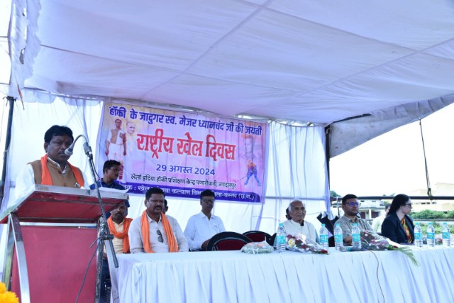 जगदलपुर हॉकी के जादूगर मेजर ध्यानचंद की जयंती पर खेल दिवस के अवसर पर बस्तर सांसद महेश कश्यप ने युवाओं को प्रोत्साहित करते हुए कहा कि बस्तर के युवा बस्तर को खेल के माध्यम से अलग पहचान दिलवाएं। सांसद श्री कश्यप ने बस्तर के खिलाड़ियों द्वारा राजनांदगांव में आयोजित 24वीं राज्य स्तरीय शालेय क्रीड़ा हाकी प्रतियोगिता में बालक-बालिका वर्ग में प्रथम स्थान हासिल कर राष्ट्रीय स्तर पर खेलने दिल्ली जा रहे खिलाड़ियों को बधाई और शुभकामनाएं दी।