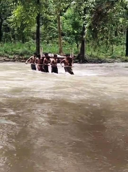 - गंभीर महिला को खाट पर लादकर बाढ़ग्रस्त नदी से निकले ग्रामीण