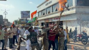 जगदलपुर कांग्रेस नेता राहुल गांधी की जीभ काटने और उन्हें आतंकवादी कहे जाने से कांग्रेस के नेता और कार्यकर्ता भड़क उठे हैं। जगदलपुर में आज कांग्रेसियों ने बुलढाणा महाराष्ट्र के शिवसेना विधायक और रेल राज्यमंत्री का पुतला दहन कर इन नेताओं की गिरफ्तारी की मांग की।