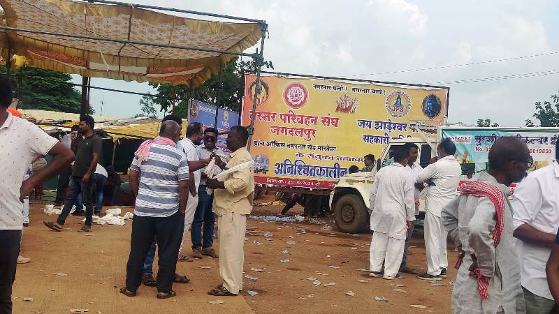 जय झाड़ेश्वर समिति और बस्तर परिवहन संघ के पदाधिकारी एवं सदस्य हफ्तेभर से नगरनार स्टील प्लांट के गेट नंबर -2 के सामने डटे रहकर धरना दे रहे हैं। उनकी मांग है कि संयंत्र से माल परिवहन का काम स्थानीय परिवहन व्यवसायियों को दिया जाए, प्लांट में बस्तर संभाग के शिक्षित अर्ध शिक्षित बेरोजगारों को नौकरियां दी जाए और यहीं के मजदूरों को काम पर रखा जाए। दोनों संगठनों के पदाधिकारियों का आरोप है कि संयंत्र की स्थापना के लिए जमीन लेते समय स्थानीय लोगों के साथ जो समझौता किया गया था, उसका एनएमडीसी प्रबंधन खुलेआम उल्लंघन कर रहा है। बाहरी लोगों को नौकरियां दी जा रही हैं, माल परिवहन का काम बाहरी ट्रांसपोर्टरों से कराया जा रहा है।. संयंत्र के प्रदूषण से हमारी जमीन, जल हवा प्रदूषित हो रही है, बीमारियों का शिकार हम हो रहे हैं और प्लांट का लाभ बाहरी लोगों को मिल रहा है। इन मांगों को लेकर प्रदर्शन कर रहे लोगों ने प्लांट से उत्पादित माल की निकासी ठप कर दी है। बाहर ट्रकों की कतार लग रही है। इससे प्लांट को करोड़ों का घाटा हो रहा है। बावजूद प्रबंधन सकारात्मक रुख नहीं दिखा रहा है।