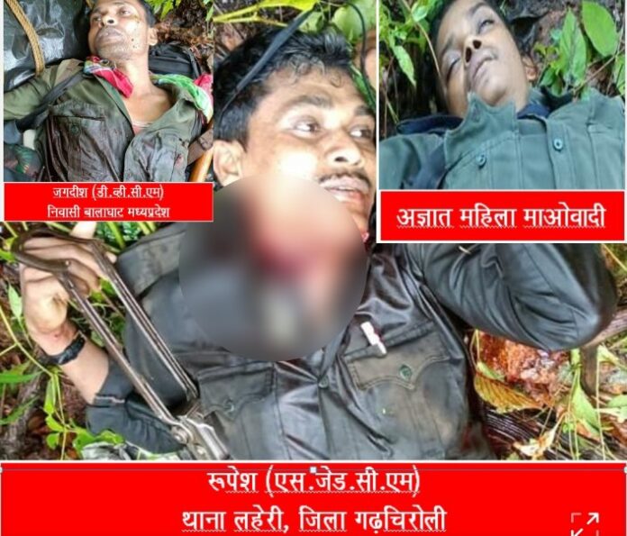 जगदलपुर बस्तर संभाग के अबूझमाड़ क्षेत्र में पुलिस और सुरक्षा बलों ने टॉप नक्सली कमांडर रुपेश और शीर्ष नक्सली लीडर जगदीश को मार गिराया है। एक महिला नक्सली के शव की शिनाख्त नहीं हो पाई है।मुठभेड़ के बाद तीनों के शव बरामद कर लिए गए हैं। वहीं मुठभेड़ स्थल से एके-47, इंसास, एसएलआर जैसे घातक आधुनिक हथियार मिले हैं। माना जा रहा है कि इस मुठभेड़ में कुछ और नक्सली मारे गए हैं तथा कई घायल हुए हैं, जिन्हें नक्सली अपने साथ ले गए हैं।