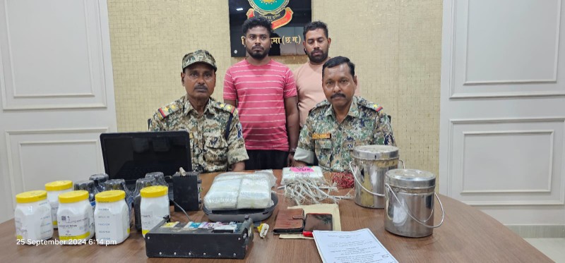 सुकमा जिले में वरिष्ठ अधिकारियों के निर्देशन में नक्सल उन्मूलन अभियान अन्तर्गत माओवादियों केे सप्लाई नेटवर्क को ध्वस्त करने जिले के माओवादी के सप्लायरों की जानकारी एवं सूचना हूमन हिंटएवं टेक्निकल हिंट के माध्यम से एकत्र कर संदिग्धों पर सतत निगाह रखी जा रही है। इसी तारतम्य में नक्सलियों के पीएलजीए बटालियन के शहरी सप्लाई नेटवर्क की हूमन हिंट एवं टेक्निकल हिंट मिलने पर 25 सितंबर को थाना सुकमा से जिला बल की पार्टी देवी चौक पटनमपारा सुकमा पहुंची। अभियान के दौरान एक मकान की घेराबंदी कर दो संदिग्धों 28 वर्षीय मंतोष मंडल पिता आनंद मंडल निवासी बंगालीपारा चिंतलनार हाल मुकाम देवी चौक पटनमपारा सुकमा और 30 वर्षीय एस. नागार्जुन पिता एस. सुंदरराव जाति तेलगा निवासी ग्राम मेंडामेटा राजमहेंद्री जिला तुर्प गोदावरी आंध्रप्रदेश हाल मुकाम मिनी स्टेडियम के पीछे पटनमपारा सुकमा को पकड़ा गया। इन दोनों के कब्जे से अलग अलग 2 किग्रा यूरिया पावडर, 2 डिब्बा विस्फोट करने वाला पोटेशियम नाईट्रेट, 3 डिब्बा विस्फोट करने वाला एल्यूमिनियम पावडर, तैयार विस्फोटक को पैक करने वाली रेपर झिल्ली 2 पैकेट, 1 नग टिफिन बम, 2 नग तारयुक्त डेटोनेटर एवं नक्सलियों द्वारा प्रचार प्रसार के लिए उन्हें दिए गए 3 नग नक्सल एवं 2 नग रियल मी कम्पनी का मोबाईल मय सिम एवं 3 डिब्बा विस्फोट करने वाला पोटेशियम नाईट्रेट 2 डिब्बा विस्फोट करने वाला एल्यूमिनियम पावडर, पैक करने वाला रेपर झिल्ली 3 पैकेट, 1 नग टिफिन बम, 8 नग तार युक्त डेटोनेटर एवं 3 नग नक्सल साहित्य 1 नग प्रिटिंग मेक टेक, 1 नग एचपी कंपनी का लैपटॉप, 3 नक्सल साहित्य जिसे नक्सलियों द्वारा प्रचार प्रसार हेतु दिए गए थे एवं एक नग नियल नॉट कंपनी का मोबाईल मय सिम, 1 नग विवो कंपनी का मोबाईल मय सिम बरामद किया गया। विस्फोटक सामाग्री रखे जाने के संबंध में गहन पूछताछ करने पर दोनों व्यक्तियों द्वारा वर्ष 2020 से पीएलजीए बटालियन के नक्सलियों के लिए खाद्य सामाग्री, गन पावडर, केमिकल, डेटोनेटर, वाकी टाकी, विस्फोटक सामाग्री आदि सप्लाई करने एवं उक्त सामाग्रियों को नक्सलियों को देने के के लिए रखने की बात स्वीकार की। उक्त कृत विधि विरूद्ध पाये जाने से थाना सुकमा में धारा 04, 05 विस्फोटक पदार्थ अधिनियम के तहत अपराध पंजीबद्ध कर अग्रिम वैधानिक कार्यवाही करते हुए दोनों आरोपियों को गिरफ्तार कर न्यायालय में पेश किया गया, जहां से उन्हें न्यायिक रिमांड पर जेल भेज दिया गया।