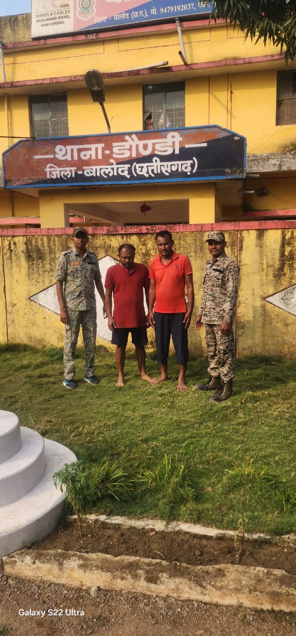 –एस.आर. भगत पुलिस अधीक्षक महोदय जिला बालोद एवं श्रीमान अशोक कुमार जोशी अतिरिक्त पुलिस अधीक्षक महोदय जिला बालोद एवं श्रीमती डां. चित्रा वर्मा नगर पुलिस अधीक्षक दल्ली राजहरा के निर्देशन में उपनिरीक्षक मनीष सेण्डे थाना प्रभारी डौण्डी व स्टॉफ टीम के द्वारा दीपावली त्यौहार के दौरान अवैध रूप से बेचे जा रहे कच्चे महुआ शराब एवं जुआ खेलने की सुचना पर दिनांक 01.11.24 को 16 आरोपी ग्राम पेटेचुवा, झुरहाटोला, चिखली के खिलाफ 3(2) जुआ एक्ट में अलग अलग 2550 रू,1050रू. ,2950रू ,2250 रू. कुल जुमला 8800 रू. नगद जप्ती कर कार्यवाही की गई है एवं आरोपी भोलाराम पोया, नरेश पोया निवासी चिखली के खिलाफ अधिक मात्रा में अवैध शराब रखने एवं बिक्री करते पाये जाने पर अप.क्र 90/24 धारा 34(2) आबकारी एक्ट कार्यवाही की गई है आरोपियों को गिरफ्तारी कर न्यायिक रिमाण्ड पर जेल दाखिल किया गया है। पुरी कार्यवाही में थाना डौण्डी से थाना प्रभारी डौण्डी मनीष शेंडे , सउनि दुर्जन लाल रावटे , प्र.आर. 640, विष्णु तारम, प्र.आर. 561 सुनील मंडावी, आर. 179 पुकेश्वर साहू , आर. 532, ईश्वर भण्डारी , आर. 477 बिरेन्द्र भुआर्य, आर. 648 अजय माहला , आर. 314 भुनेश्वर यादव , आर. 293 सुनील ध्रुव, आर. 166 षमनेष साहू का विशेष योगदान रहा है।