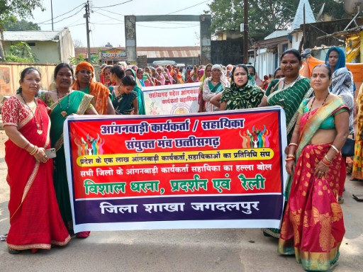 मांग पत्र कहा गया है कि छत्तीसगढ़ में पंचायत कर्मी, शिक्षा कर्मी, स्वास्थ्य कर्मी, पंचायत सचिवों जैसे मानसेवियों को सरकार नीति बनाकर नियमित शासकीय कर्मचारी घोषित कर चुकी है। उसी तरह आंगनबाड़ी कार्यकर्ताओं व सहायिकाओं को भी नियमित करते हुए शासकीय कर्मचारी घोषित किया जाए। शासकीय कर्मचारी घोषित करने तक आंगनबाड़ी कार्यकर्ता को 21 हजार रुपए और सहायिका को 17850 रुपए वेतन दिया जाए साथ ही वर्तमान में कार्यकर्ताओं को प्राप्त मानदेय 10000 रूपये की 85 प्रतिशत राशि सहायिकाओं के लिए स्वीकत की जाए। सेवानिवृत्ति पश्चात पेंशन ग्रेज्युटी की सुविधा दी जाए। कार्यकर्ता को 10000 और सहायिका को 8000 रुपए मासिक पेंशन के साथ बुढ़ापे के शेष जीवन यापन के लिए कार्यकर्ता को 5 लाख रूपये और सहायिका को 4 लाख रूपये एक मुश्त ग्रेज्युटी राशि प्रदान की जाए। आंगनबाड़ी कार्यकर्ताओं और सहायिकाओं को समूह बीमा योजना से जोड़ा जाए।कार्यकर्ता सहायिका की आकस्मिक मृत्यु पर परिवार के एक सदस्य को अनुकम्पा नियुक्ति दी जाए। मानदेय को मंहगाई भत्ता के साथ जोड़ा जाए और मंहगाई भत्ता स्वीकृत किया जाए। वर्षों से अल्प मानदेय में कार्यरत आंगनबाड़ी कार्यकर्ताओं एवं सहायिकाओं को पदोन्नति के पद रिक्त होने के बाद भी 50 प्रतिशत का प्रतिबंध होने के कारण उन्हें इसका लाभ नहीं मिल रहा है। 50 प्रतिशत के बंधन को समाप्त किया जाए और कार्यकर्ता को बिना उम्र बंधन के वरिष्ठता क्रम में बिना परीक्षा के सुपरवाइजर के रिक्त शत प्रतिशत पद पर लिया जाए। इसी तरह सहायिकाओं को भी 50 प्रतिशत के बंधन को समाप्त कर कार्यकर्ता के पद रिक्त होने पर शत प्रतिशत वरिष्ठता क्रम में कार्यकर्ता के पद पर पदोन्नत किया जाए।सभी केन्द्रों में गैस सिलेंडर और चूल्हा प्रदान किया जाए और सिलेंडर की नियमित रिफिलिंग की व्यवस्था सुगम बनाई जाए।