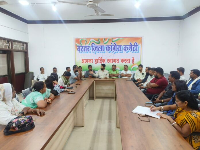 जगदलपुर के राजीव भवन में रविवार को बस्तर जिला शहर कांग्रेस कमेटी की बैठक अध्यक्ष सुशील मौर्य की उपस्थिति में हुई।कांग्रेस पदाधिकारियों व कार्यकर्ताओं ने मुख्यमंत्री विष्णुदेव साय की अध्यक्षता में सोमवार को चित्रकोट रेसोर्ट में होने वाली बस्तर आदिवासी विकास प्राधिकरण की बैठक के विरोध प्रदर्शन की रणनीति बनाई। शहर कांग्रेस अध्यक्ष सुशील मौर्य ने कहा कि मुख्यमंत्री विष्णुदेव साय का यह कार्यक्रम महज एक पिकनिक मनाने जैसा है। आज तक बस्तर विकास प्राधिकरण की बैठक कभी चित्रकोट रेसोर्ट में नही हुई है। पूर्ववर्ती कांग्रेस सरकार में हमेशा यह बैठक कलेक्ट्रेट या अन्य प्रशासनिक कार्यालय में होती थी। भाजपा सरकार इस महत्वपूर्ण बैठक को चित्रकोट रेसोर्ट में कर प्राधिकरण की गरिमा को तार तार कर रही है। जिसका कांग्रेस पार्टी कड़ा विरोध करती है। सुशील मौर्य ने कहा कि मुख्यमंत्री की सुरक्षा का हवाला देकर चित्रकोट के सौंदर्य को बर्बाद करने पेड़ों की कटाई की जा रही है। यह निंदनीय कृत्य है। इसलिए कांग्रेस पार्टी मुख्यमंत्री विष्णुदेव साय के कल के कार्यक्रम का पुरजोर विरोध करेगी। बैठक में वरिष्ठ कॉंग्रेसी हनुमान द्विवेदी, रविशंकर तिवारी, एम वैंकट राव, उप नेता प्रतिपक्ष राजेश राय, पार्षद बलराम यादव, अंजना नाग, सुषमा सुता, सुषमा कश्यप, कोमल सेना, ललिता राव, शुभम यदु, आभास महंती, सुखराम नाग, सूर्या पानी, ब्लॉक अध्यक्ष राजेश चौधरी, प्रभारी महामंत्री ज़ाहिद हुसैन, महेश द्विवेदी, निकेत झा, मीडिया प्रभारी शादाब अहमद, शहनाज बेगम, पापिया गाईंन, मनीता राउत, एस नीला, राजा तिवारी, विक्रांत सिंह, अंकित सिंह, विशाल खंबारी, लव मिश्रा, सायमा अशरफ, शेख अयाज, उस्मान रज़ा, शंकर नाग, प्रदीप शाखी, कुणाल पांडे, सुनीता दास, लोकेश चौधरी, नितेश जोशी, नीलू राम, खिरेंद्र यादव, धनसिंह जमावड़ा, फूलसिंह बघेल आदि मौजूद रहे।