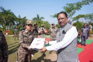 प्रमिका दुग्गा ने बताया कि बस्तरिया बटालियन में 2017 में उनका चयन हुआ था। प्रमिका मूलतः नारायणपुर जिले के ग्राम पाल की है। उन्होंने 12वीं तक की शिक्षा ग्रहण की है। इससे पहले सुकमा जिले के इंजराम 219 बटालियन, कोंटा 217 बटालियन, अंदरूनी क्षेत्रों में सेवा देने के उपरांत अभी सेडवा 241 बटालियन में पदस्थ हैं। कार्यक्रम में उपस्थित अन्य महिला जवानों के परिजनों के लिए मुख्यमंत्री साय ने वस्त्र भेंट किए।