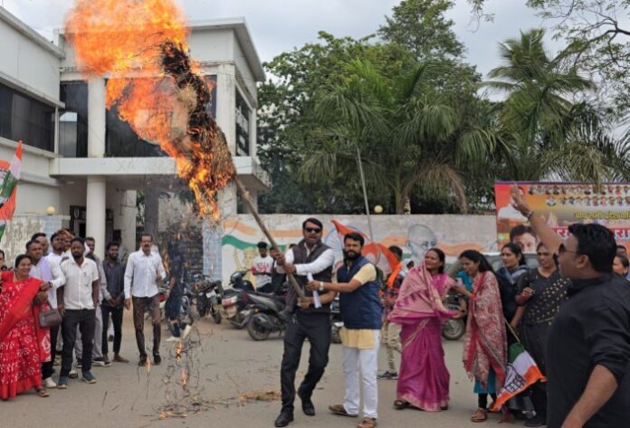 शहर जिला कांग्रेस अध्यक्ष सुशील मौर्य ने कहा गृहमंत्री अमित शाह द्वारा सदन द्वारा बाबा साहेब अंबेडकर पर उपहास भरी टिप्पणी किए जाने के खिलाफ पुतला दहन किया गया। मौर्य ने कहा कि बाबा साहेब के संविधान के महत्व को नहीं मानने वाले लोग उन्हें समझ भी नहीं सकते हैं। उन्होंने वंचित-शोषित और समाज के आवाज देने का काम बाबा साहेब डॉ. भीमराव अंबेडकर ने किया था। गृहमंत्री अमित शाह ने राज्यसभा में अपमानजनक तरीके से कहा था कि अंबेडकर का नाम लेना आजकल फैशन बन गया है इतना नाम भगवान का लेते तो सात जन्म तक स्वर्ग मिल जाता। संविधान विरोधी संघियों को यह पता होना चाहिए कि देश के नब्बे फीसदी आदिवासी, दलित, पिछड़े, अल्पसंख्यक और महिलाओं को जो सम्मान के साथ संवैधानिक अधिकार मिले हैं उसमें बाबा साहेब का महत्वपूर्ण योगदान है। इस दौरान उपनेता प्रतिपक्ष राजेश राय, हनुमान द्विवेदी, रविशंकर तिवारी, नरेंद्र तिवारी, विक्रम सिंह डांगी, अनिता पोयाम, सूरज कश्यप, अजय बिसाई, विशाल खंबारी, महिला कांग्रेस शहर अध्यक्ष लता निषाद, पार्षद कोमल सेना, ललिता राव, कमलेश पाठक, सुषमा सुता, आभाष महंती,अंजना नाग, पापिया गाइन, शहनाज बेगम, बबली खान, हेमू पंडित, राम शंकर पिल्लई जावेद खान,अनुराग महतो, महामंत्री जाहिद हुसैन, महेश द्विवेदी, निकेत झा,रियाज खान, अफरोज बेगम, शादाब अहमद, खीरेंद्र यादव आदि मौजूद रहे।