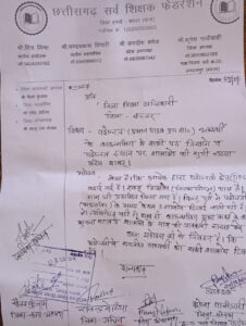 डीईओ के दौरे पर होने की वजह से वहां मौजूद अधिकारी देवाशीष चौधरी को ज्ञापन दिया गया। ज्ञापन सौंपने के बाद फेडरेशन के जिला अध्यक्ष भूपेश पाणिग्रही ने बताया कि काफी दिनों पश्चात हमारे साथियों की पदोन्नति हो रही है। इसमें हमारे साथियों को निराशा हाथ न लगे इसलिए यह ज्ञापन दिया गया है, ताकि विभाग भी अपनी पूर्ण तैयारी कर ले। इससे पूर्व काउंसलिंग होने पर 3 शालाओं के नाम दिए जाते थे। जिसे शिक्षक चाहकर भी नहीं लेते थे और हर बार पदोन्नति से वंचित हो जाते थे। इसलिए जिस भी शिक्षक साथी का नंबर आए। उन्हें सभी शालाएं दिखाई जाएं। जिससे वो अपनी मनपसंद शाला का चयन कर सकें। इस हेतु काउंसलिंग स्थल पर सभी शालाओं के नाम भी चस्पा करने हेतु जिला शिक्षा अधिकारी से आग्रह किया गया है। इस पत्र का सभी शिक्षकों ने स्वागत किया है। ज्ञापन देने वालों में रवींद्र सेठिया, मन्नू नेताम, सुमीत देवांगन और अन्य शामिल थे।