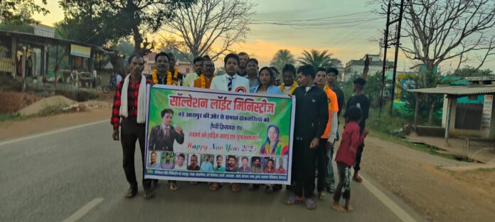 तोकापाल साल्वेशन लाईट मिनिस्ट्रीज़ इंडिया बड़े आरापुर के तत्वावधान में मसीही समाज द्वारा नववर्ष के उपलक्ष्य में आरापुर चर्च से तोकापाल बाजार चौक केशलूर तक डीजे व गाजे बाजे सहित झंडे लिए नाचते-गाते शुभकामना रैली निकाली गई।और हिन्दू, मुसलमान, सिख, इसाई, जैन, बौद्ध व सर्व आदिवासी समाज सभी को प्रभु यीशु मसीह के शिक्षानुसार प्रेम व शांति, विश्वास, भाईचारे के संदेश के साथ शुभकामना दी गई। इस रैली में हजारों की संख्या में विश्वासी लोग सम्मलित हुए। रैली में शामिल लोग हाथ हिलाकर लोगों को अभिवादन कर रहे थे और क्रिसमस व नववर्ष की शुभकामनाएं हैप्पी न्यू ईयर 2025 व नया साल मुबारक का नारा लगाकर दे रहे थे। यह रैली आरापुर, परपा, तोकापाल क्षेत्र के लोगों के बीच मनमोहक छवि के साथ संगीतमय वातावरण में थिरकते हुए लोगों सहित चर्च मुख्यालय वापस लौटी। साल्वेशन लाईट मिनिस्ट्रीज़ चर्च मुख्यालय में नववर्ष सभा का आयोजन किया गया। सभा की अध्यक्षता डॉ. रेव्ह सुशील कुमार संगम व पास्टर मीना संगम ने की।उन्होंने प्रेम, एकता व भाईचारे का शास्त्र आधारित उपदेश दिया। सभा मे