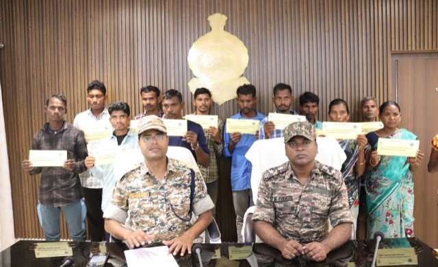 बीजापुर जिले में चलाए जा रहे नक्सल उन्मूलन अभियान के तहत डीआरजी, बस्तर फाईटर, एसटीएफ, कोबरा व सीआरपीएफ के संयुक्त प्रयासों से तथा छग शासन की पुनर्वास एवं आत्मसर्पण नीति और नियद नेल्ला नार योजना से प्रभावित होकर पश्चिम बस्तर डिवीजन अंतर्गत एसीएम, एओबी के कटाम एरिया कमेटी सदस्य, पीपीसीएम, गोंदिया डिवीजन के सदस्य एवं पामेड़ एरिया कमेटी सदस्यों सहित 13 नक्सलियों ने 9 जनवरी को पुलिस उप महानिरीक्षक सीआरपीएफ बीजापुर देवेंद्र सिंह नेगी, पुलिस अधीक्षक बीजापुर डॉ. जितेंद्र कुमार यादव, पुलिस अधीक्षक एसटीएफ विजय कुमार पाण्डे, कमांडेंट 202 कोबरा अमित कुमार, कमांडेंट 204 कोबरा संतोष कुमार मल्ल, कमाडेंट 205 कोबरा नरेश पवार, कमांडेंट 208 कोबरा शशिभूषण, कमांडेंट 210 कोबरा अशोक कुमार, कमांडेंट 85वीं बटालियन सीआरपीएफ सुनील कुमार राही, कमांडेंट 222 बटालियन सीआरपीएफ विजेंद्र सिंह, कमांडेंट 199 बटालियन सीआरपीएफ आनंद कुमार, कमांडेंट 151 बटालियन सीआरपीएफ राजीव कुमार, कमांडेंट 228 बटालियन सीआरपीएफ लतीफ कुमार साहू, कमांडेंट 196 बटालियन सीआरपीएफ कुमार मनीष, कमांडेंट 170 बटालियन सीआरपीएफ सरकार राजा रमन, अतिरिक्त पुलिस अधीक्षक ऑप्स मयंक गुर्जर, अतिरिक्त पुलिस अधीक्षक ऑप्स यूलैंडन यार्क, उप पुलिस अधीक्षक ऑप्स सुदीप सरकार एवं उप पुलिस अधीक्षक डीआरजी विनीत साहू के समक्ष माओवादियो की खोखली विचारधारा, भेदभाव पूर्ण व्यवहार, उपेक्षा व प्रताड़ना से तंग आकर एवं छत्तीसगढ़ शासन के पुनर्वास एवं आत्मसमर्पण नीति से प्रभावित होकर समर्पण किया। आत्मसमर्पण करने वाले नक्सलियों में मुन्ना ककेम एसीएम एरिया कमेटी सदस्य, ईनाम 5 लाख रूपए, सुखराम हेमला पीपीसीएम प्लाटून नंबर 10 सेक्शन ए कमांडर ईनाम 5 लाख रूपए, देवे मड़कम ऊर्फ चांदनी मलाजखंड एरिया कमेटी पार्टी सदस्य, ईनाम 1 लाख रूपए, नंदू अवलम ऊर्फ दुर्गेश गोंदिया डिवीजन सदस्य ईनाम 1 लाख रूपए, भीमा वेको पार्टी सदस्य ईनाम 1 लाख रूपए, बिच्चेम मुड़मा सीएनएम सदस्य, लालू माड़वी ऊर्फ गोटा आरपीसी मिलिशिया सदस्य, देवे मड़कम ऊर्फ जानकी, समैया सुन्नम आरपीसी, भीमा नुपो काउरगुट्टा आरपीसी सदस्य, कोसा मड़कम पिता हिड़मा मड़कम मिलिशिया कमांडर, बुधू मड़कम पिता हड़मा मड़कम काउरगुट्टा, काउरगुटटा संघम सदस्य, पोज्जे नुपो पति जोगा नुपो काउरगुट्टा जीरापारा कोमटपल्ली आरपीसी सदस्य शामिल हैं। सरेंडर करने पर इन्हें उत्साहवर्धन हेतु शासन की आत्मसमर्पण एवं पुनर्वास नीति के तहत 25-25 हजार रूपए की नगद प्रोत्साहन राशि प्रदान की गई।