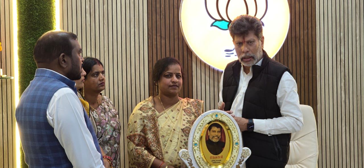 जगदलपुर प्रदेश भाजपा अध्यक्ष किरण देव से नगरनार बीजेपी मंडल अध्यक्ष महेंद्र सेठिया ने कार्यकर्ताओं के साथ पहुंचकर मुलाकात की। महेंद्र सेठिया ने पार्टी की बैठक और अन्य मुद्दों पर चर्चा की। इस अवसर पर महिला मोर्चा अध्यक्ष गीता देवी मिश्रा भी अपनी महिला कार्यकर्ताओं समेत उपस्थित थीं। गीता मिश्रा ने भी किरण देव का स्वागत किया। इस अवसर पर प्रदेश बीजेपी अध्यक्ष ने नगरनार महिला मोर्चा मंडल अध्यक्ष गीता मिश्र से मोर्चा से संबंधित विषयों पर चर्चा की।