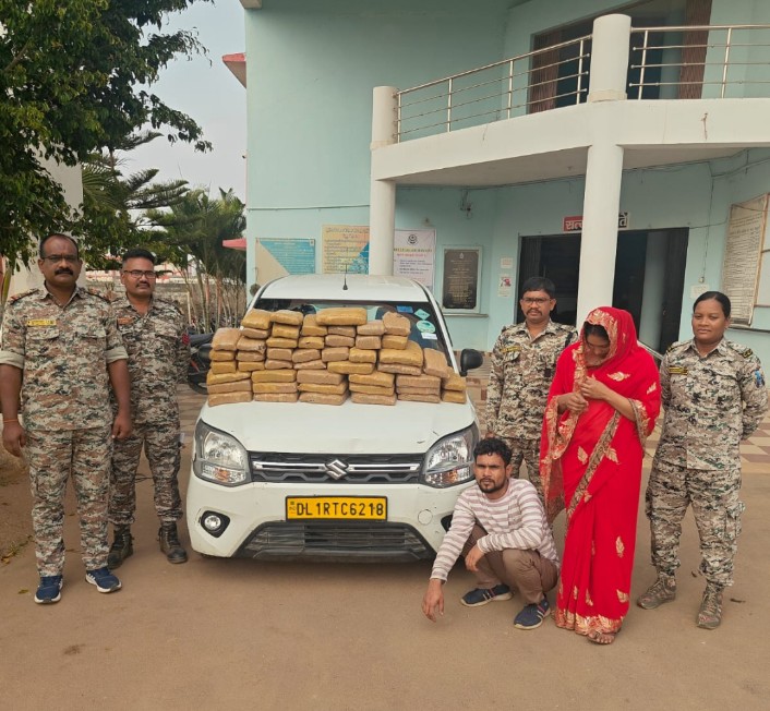 त्रिस्तरीय पंचायत चुनाव के मदद्देनजर सरहदी राज्य उड़ीसा से छत्तीसगढ में होने वाले अवैध मादक पदार्थों के परिवहन पर अंकुश लगाने पुलिस अधीक्षक शलभ कुमार सिन्हा, अतिरिक्त पुलिस अधीक्षक माहेश्वर नाग के दिशा निर्देशन एवं नगर पुलिस अधीक्षक आकाश श्रीश्रीमाल के पर्यवेक्षण में थाना प्रभारी निरीक्षक टामेश्वर चौहान के नेतृत्व में थाना स्तर पर टीम गठित की गई है। इस टीम द्वारा गांजा तस्करों की लगातार धर पकड़ की जा रही है। इसी क्रम में 7 फरवरी को मुखबिर की सूचना के आधार पर वैगन आर कार कमांक डीएल-1 आरटीसी 2-6218 को रोका गया। कार में एक पुरूष एवं एक महिला गांजा लेकर उड़ीसा राज्य की ओर से थे।कार सवार युवक राहुल सुटवाल पिता गोवर्धन सुटवाल निवासी नवरंगपुर थाना खेड़कीदोला जिला गुड़गांव हरियाणा हाल निवासी हनुमान मंदिर के पास महिपालपुर पहाड़ी दिल्ली और अर्जिना बीबी पति आलेम नदाफ निवासी नदाब पारा न्यू नघरिया थाना जिला मालदा पं. बंगाल हाल निवासी हनुमान मंदिर के पास महिपालपुर पहाड़ी दिल्ली को हिरासत में लेकर कार की तलाशी ली गई। कार की सीट के नीचे, डिक्की एवं कार के दरवाजे के अंदर गांजा के 48 पैकेट बरामद हुए। गांजे का वजन 67.990 किलोग्राम निकला और उसकी कीमत 6 लाख 80 हजार रूपए आंकी गई है। गांजा परिवहन में प्रयुक्त कार की कीमत 3 लाख रूपए और 15 हजार मूल्य के दो मोबाईल फोन समेत कुल 9 लाख 95 हजार रुपए का माल आरोपियों के कब्जे से बरामद हुआ है।