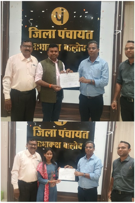 बालोद जिला पंचायत बालोद के सभागार में रिटर्निग अधिकारी पंचायत जिला बालोद संजय कन्नोजे ने जिला पंचायत क्षेत्र 12 नवनिर्वाचित जिला पंचायत सदस्य मिथलेश निरोटी पूर्व उपाध्यक्ष जिला पंचायत बालोद व जिला पंचायत क्षेत्र क्रमांक 11 से नवनिर्वाचित जिला पंचायत सदस्य कु. नीलिमा श्याम को निर्वाचन का प्रमाण पत्र प्रदान प्रदान किया गया इस अवसर पर अनिल सुथार पूर्व जनपद सदस्य, कुमान सिंह कुरेटी, गणेश सेवता ,सहित अनेक समर्थक उपस्थित थे।