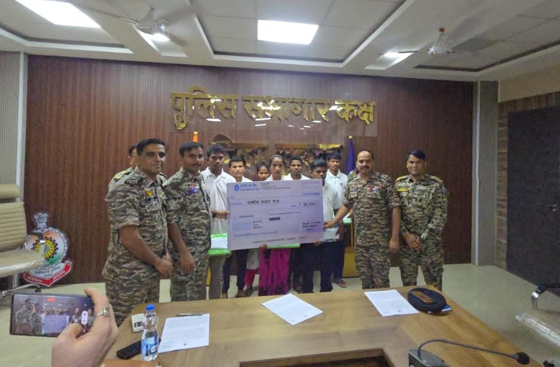 जगदलपुर बस्तर संभाग के सुकमा में एक नक्सली दंपति समेत 7 हार्डकोर नक्सलियों ने आत्म समर्पण किया है। इन सभी पर था कुल 32 लाख रुपए का इनाम घोषित था। दो पुरुष व एक महिला नक्सलियों पर 8- 8 लाख का इनाम घोषित था। पुलिस अधीक्षक किरण चव्हाण के समक्ष इन सभी नक्सलियों आत्मसमर्पण किया। 2021 में हुई टेकलगुड़ा घटना में 22 जवान शहीद हुए थे। ये नक्सली उसी घटना में शामिल थे। सभी को प्रोत्साहन राशि दी गई और उन्हें आश्वस्त किया गया कि सभी को शासन की पुनर्वास नीति का लाभ दिलाया जाएगा।