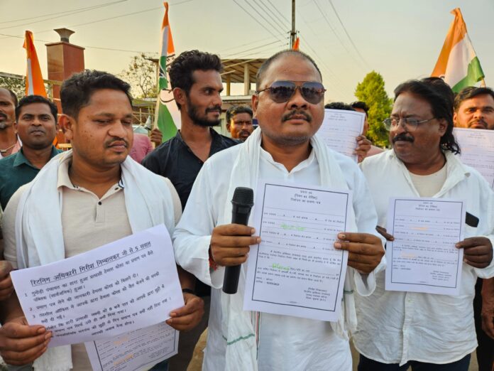 - कांग्रेसियों ने राह चलते लोगों को निर्वाचन प्रमाण पत्र बांट कर किया प्रदर्शन