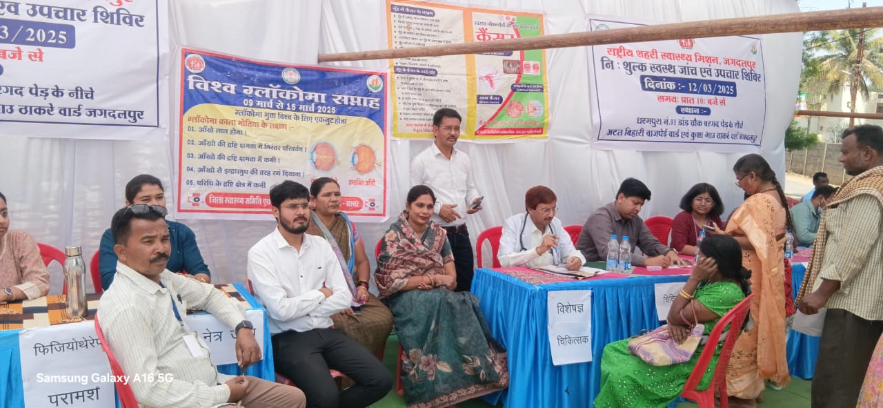 जगदलपुर मुख्य चिकित्सा एवं स्वास्थ्य अधिकारी डॉ. संजय बसाक के निर्देशानुसार 12 मार्च को सुबह 10 बजे से धरमपुरा-1 अटल बिहारी वाजपेयी वार्ड और कुशाभाऊ ठाकरे वार्ड में स्वास्थ्य विभाग द्वारा स्वास्थ्य शिविर का आयोजन किया गया।