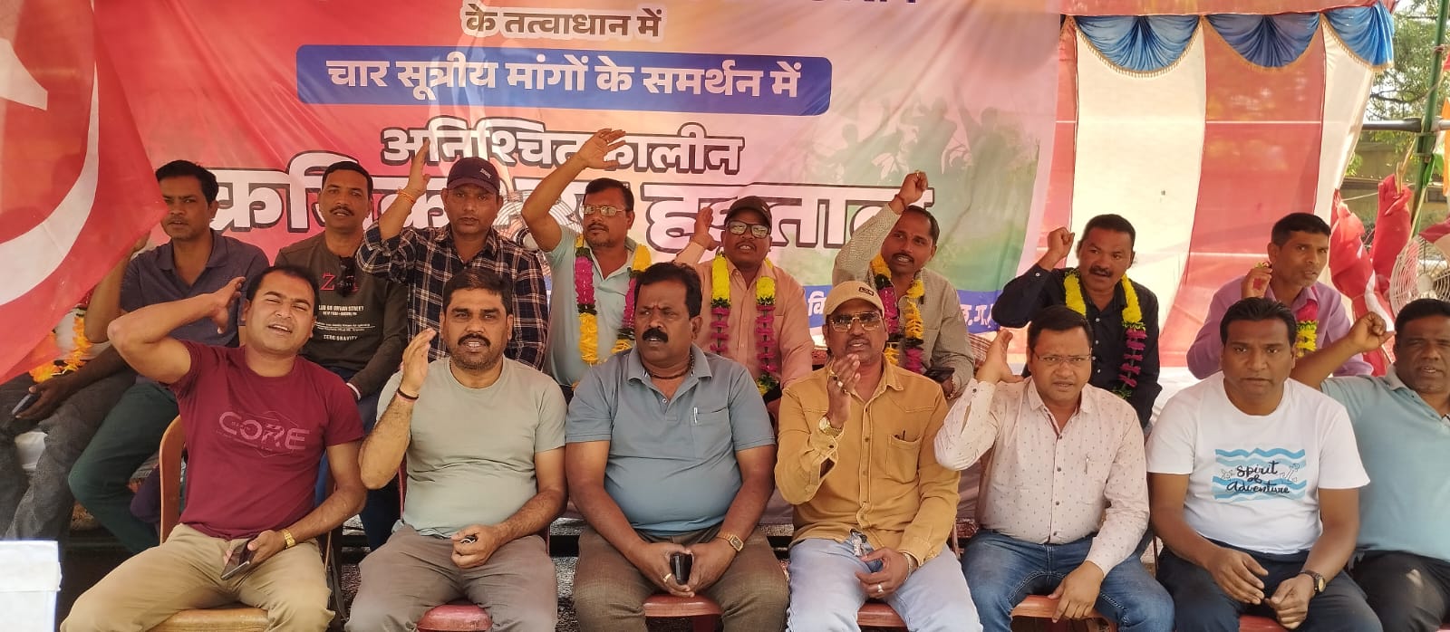 लगातार 18वें दिन भी रविवार दोपहर 1 बजे एनएमडीसी किरंदुल परियोजना के प्रशासनिक भवन के सीआईएसएफ चेक पोस्ट के सामने अनिश्चितकालीन भूख हड़ताल पर बैठे रहे। यहां तक कि होली के दिन भी भूख हड़ताल जारी रही।