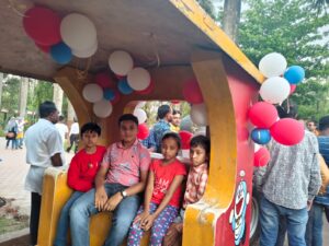 मालूम हो कि पिछले कुछ सालों से बंद पड़े टॉय ट्रेन का संचालन आज प्रारंभ हुआ। ग्रीष्मकालीन अवकाश के मद्देनजर बच्चों के लिए आज इस ट्रेन का उद्घाटन किया गया। ट्रेन को स्वयं महापौर संजय पाण्डे ने चलाकर इसका शुभारंभ किया। इसके साथ ही अतिथियों ने हरी झंडी दिखाकर ट्रेन को रवाना किया। इसके पूर्व विधिवत पूजा अर्चना की गई। पहले दिन ट्रेन चलने से बच्चों के चेहरे पर खुशी देखी गई। ट्रेन को पूरी तरह बलून से सजाया गया था। इस अवसर पर संजय पाण्डे के साथ निगम सभापति खेमसिंह देवांगन, जिला भाजपा अध्यक्ष वेदप्रकाश पांडे, पूर्व जिला अध्यक्ष विद्याशरण तिवारी, पूर्व महापौर सफीरा साहू, एमआईसी मेंबर लक्ष्मण झा, पार्षद संतोष गौर, उर्मिला यादव, हरीश पारख, दिलीप दास, पारुल बोथरा, आशा साहू सहित अन्य लोग उपस्थित रहे।
