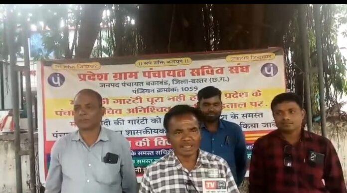 विधानसभा चुनाव के समय मोदी जी की गारंटी के अनुरूप पंचायत सचिवों को शासकीय कर्मचारी घोषित करने का वादा भाजपा ने किया था। इस साल के बजट सत्र में इस मुद्दे चर्चा तक नहीं की गई। पूरे प्रदेश में पंचायत सचिव हड़ताल माध्यम से अपना हक मांग रहे हैं। हड़ताल पर जनपद पंचायत बकावंड की 93 ग्राम पंचायतों में कार्यरत सभी 70 सचिव हड़ताल पर हैं। पंचायत सचिव रोमसिंह पटेल का कहना है कि हम 17 मार्च से हड़ताल पर डटे हुए हैं। सरकार सिर्फ आश्वासन देती आ रही है।मोदी की गारंटी को पूरा नहीं किया जा रहा है।