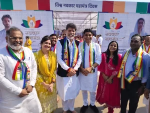 इस अवसर पर छत्तीसगढ़ सरकार के खेल मंत्री टंक राम जी, भाजपा प्रदेश अध्यक्ष किरण देव जी, एवं राज्य वित्त आयोग के अध्यक्ष श्रीनिवास मड्डी जी की गरिमामयी उपस्थिति रही।सभी ने नवकार महामंत्र का जाप कर विश्व शांति, आत्मकल्याण और समरसता के लिए प्रार्थना की।