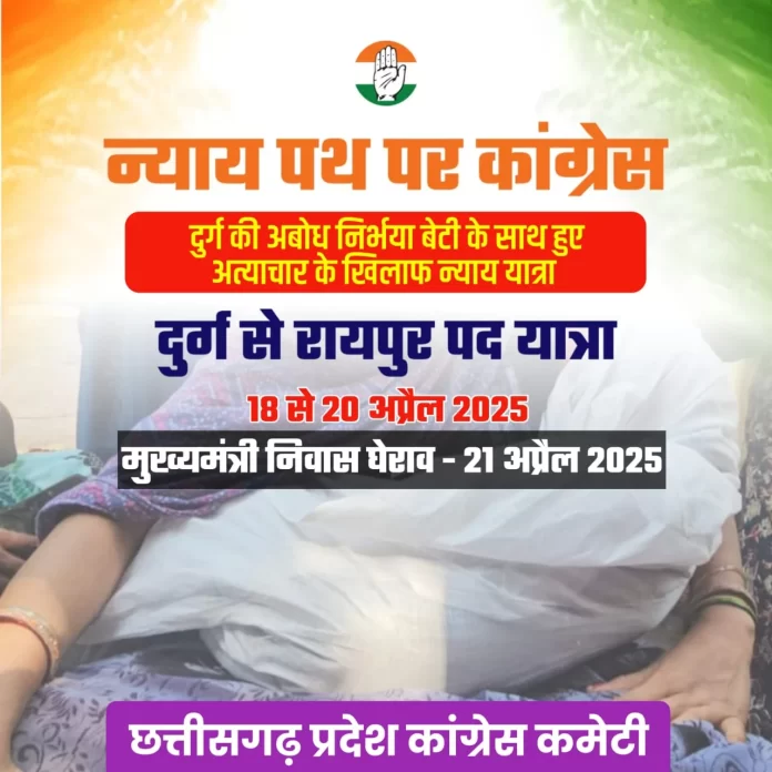 जगदलपुर दुर्ग में एक अबोध बच्ची से दुराचार और उसकी हत्या के मामले को लेकर अब प्रदेश कांग्रेस अध्यक्ष दीपक बैज ने सड़क की लड़ाई शुरू कर दी है। इस मामले में कांग्रेस ने “न्याय पथ पर कांग्रेस” अभियान शुरू किया है। इसके तहत 18 अप्रैल को दुर्ग से दीपक बैज के नेतृत्व में कांग्रेस के लोग रायपुर तक पदयात्रा निकालेंगे और 21 अप्रैल को रायपुर पहुंच कर मुख्यमंत्री निवास का घेराव करेंगे।
