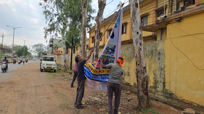जगदलपुर शहर को स्वच्छ और सुंदर बनाने के लिए महापौर संजय पाण्डेय ने जो कड़ा रुख अपनाया है, उसका असर अब दिखने लगा है। नगर पालिका निगम जगदलपुर द्वारा प्रतिबंधित क्षेत्त्रों, डिवाइडर, पेड़ विद्युत पोलों, ट्रांसफार्मर पर लगे फ्लेक्स, बैनर को निकालने के लिए बड़ा अभियान छेड़ दिया है।